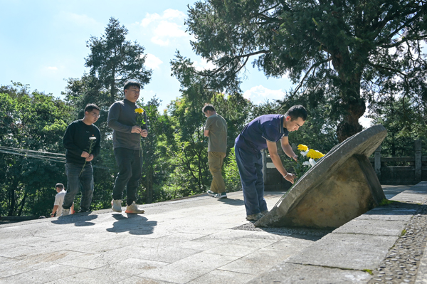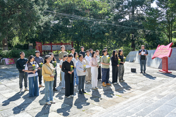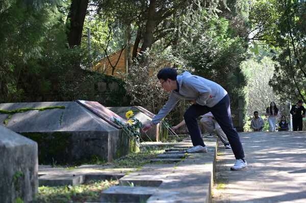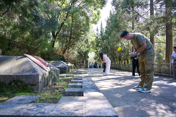 默哀毕,大家有序瞻仰烈士墓并敬献鲜花——苍松翠柏间,“马登云烈士之墓”“王德三烈士之墓”“吴澄烈士之墓”静静矗立,其右上方平台处更是安葬着王复生、张舫等革命烈士,每一座墓碑背后的英雄故事,都让在场人员接受了一次深刻的精神洗礼。