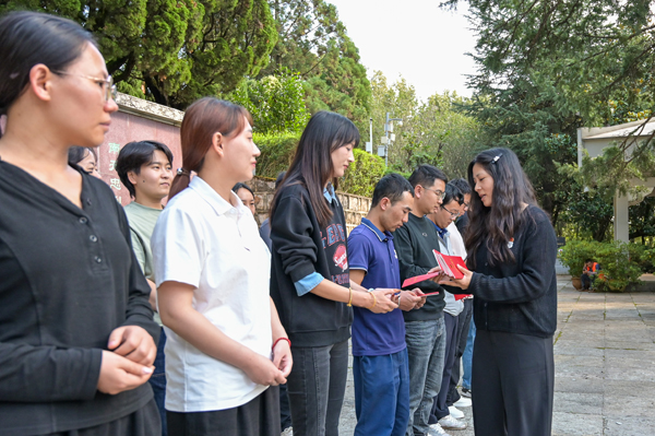 随后,现场宣读的2025年超龄离团人员名单,明确了离团团员的身份转变与责任延续。在庄重的氛围中,团委书记逐一为超龄离团团员摘下团员徽章并向他们发放《中国共产党章程》,摘下团徽意味着团员们共青团生涯的圆满落幕,但也象征着他们将以新的身份继续践行青年使命。党章是鼓励大家以此次离团为新起点,深入学习党的理论知识,坚定理想信念,积极向党组织靠拢,始终牢记革命先烈的奋斗精神,在工作与生活中继续以高标准严格要求自己,为企业的高质量发展和国家繁荣富强贡献更多力量。